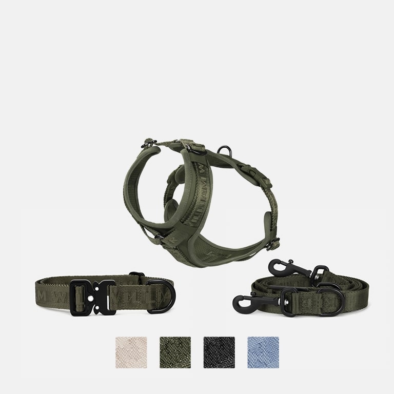 Le nostre collezioni sono curate con attenzione per offrire a te e al tuo cane un insieme armonioso. Ogni set comprende collari, guinzagli, dispenser di sacchetti e borse portasnack abbinati, perfettamente coordinati per materiali e design. Così sarete sempre eleganti e ben attrezzati.