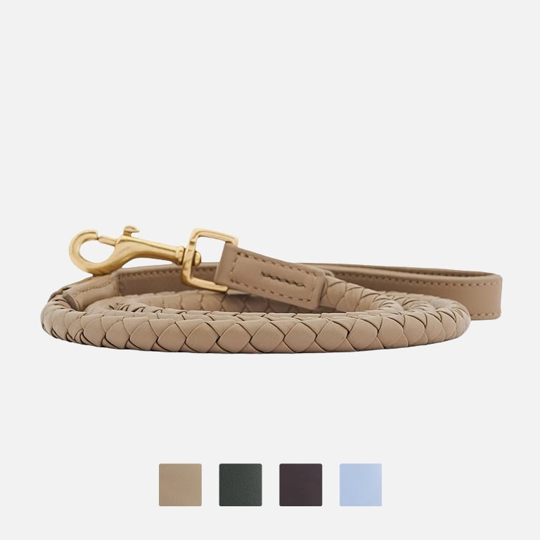 Con la nostra Twisted Collection e la nostra Prestige Collection, abbiamo altre due collezioni di guinzagli per cani di lusso realizzati in pelle intrecciata. Mentre la Twisted Collection è composta da guinzagli per cani in pelle intrecciata tonda, nella Prestige Collection troverai modelli intrecciati piatti. Se sei interessato ai guinzagli rotondi, dai un'occhiata al guinzaglio per cani Twisted Sky. Se preferisci un look classico, il guinzaglio per cani Prestige Nero potrebbe fare al caso tuo.