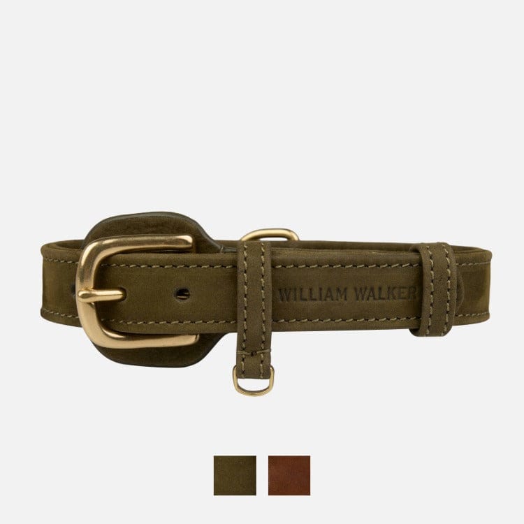 One example is the William Walker Leather Dog Collar in Forest Green, which makes every walk a stylish appearance.