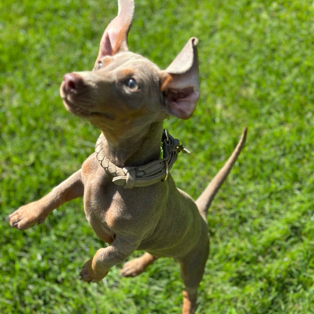 I nostri guinzagli sono disponibili in due diverse misure. La misura standard ha un diametro di 1,5 cm ed è consigliata per collari di taglia M-XXL. La versione small è più sottile (solo 0,9 cm invece di 1,5 cm) e ha una struttura molto più leggera. Il guinzaglio piccolo è quindi particolarmente adatto alle esigenze dei cani di piccola taglia, sia per motivi di peso che per motivi visivi. Lo consigliamo per i collari di taglia XS e S.